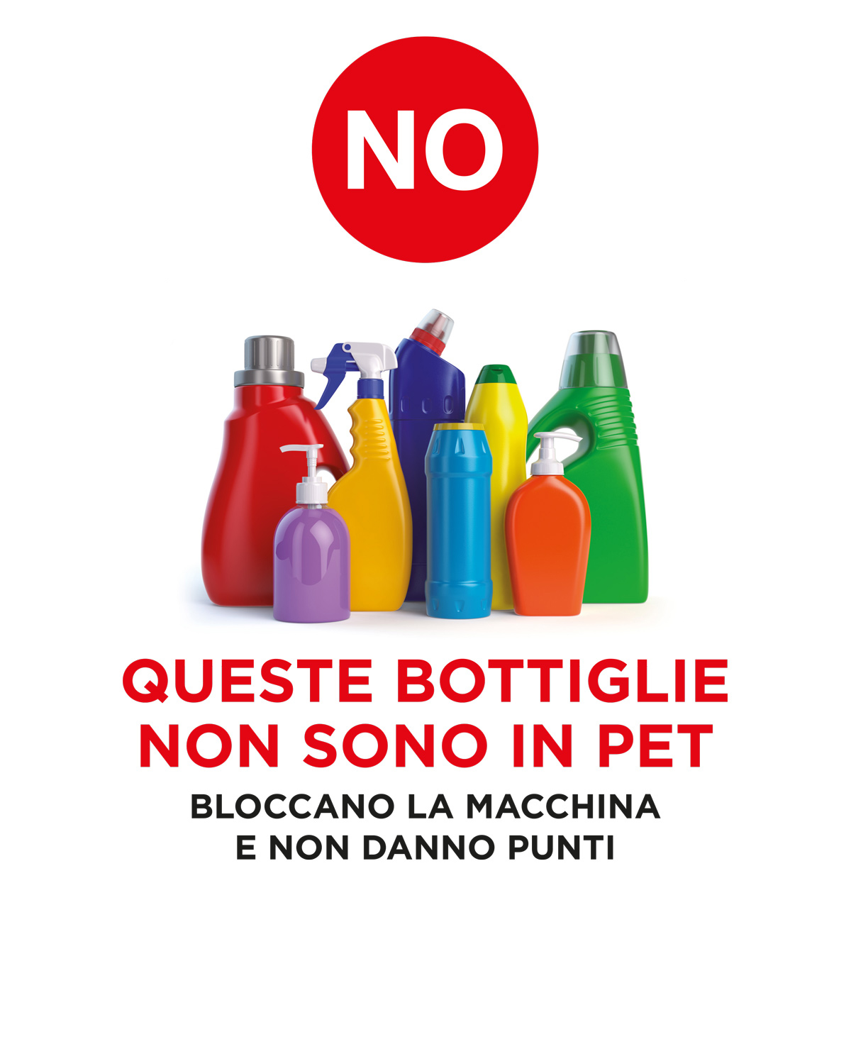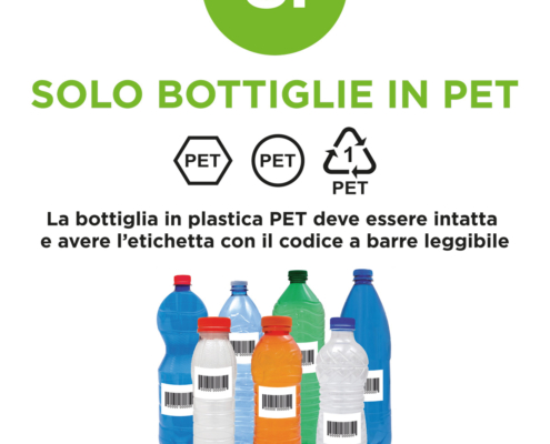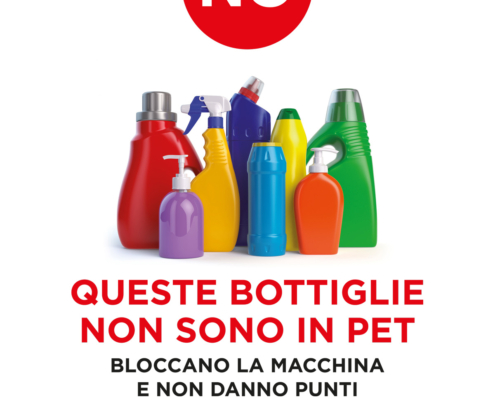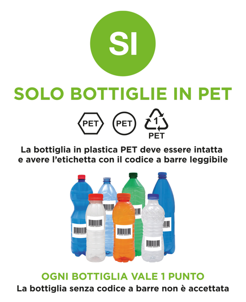 Porta le bottiglie vuote in plastica PET al punto di riciclo, devono essere non schiacciate, con l’etichetta intatta e leggibile e segui le istruzioni.