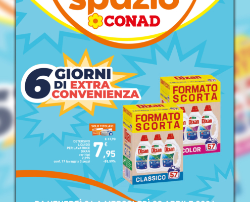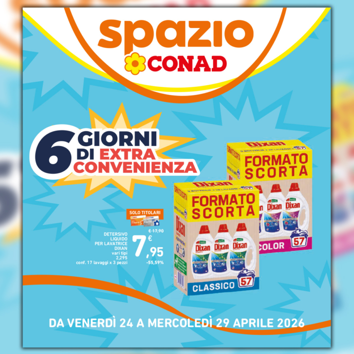 Dal 24 al 29 aprile 2026 scopri il nuovo volantino “6 giorni di Extra Convenienza” di Spazio Conad.